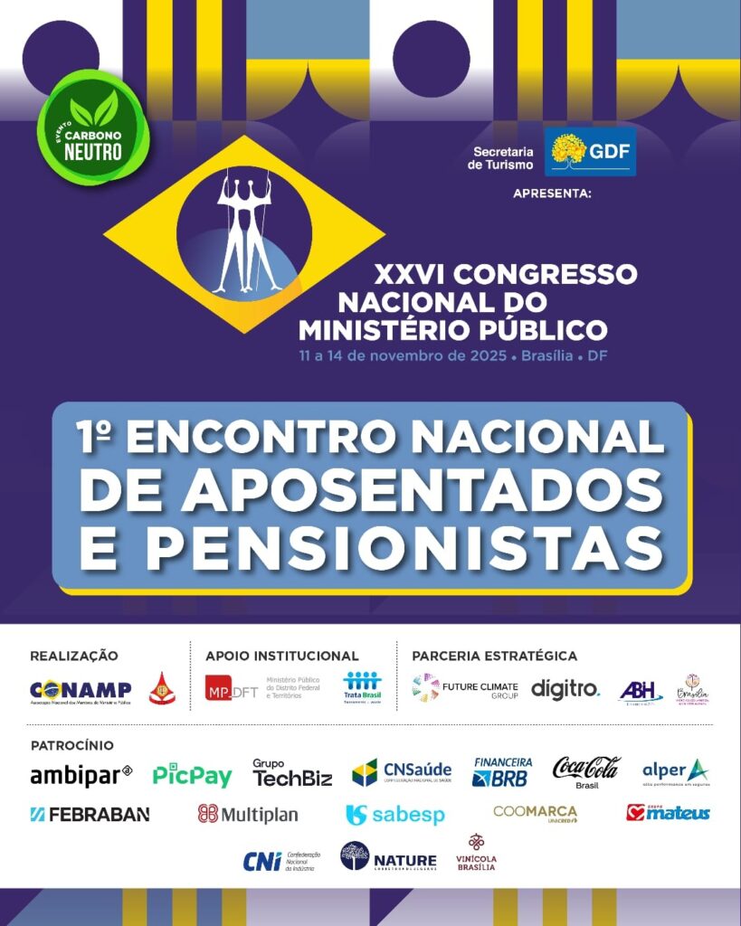 Aproveite para participar de um momento especial do evento: o 1º Encontro Nacional de Aposentados e Pensionistas da CONAMP, uma iniciativa pioneira que celebra a história, a contribuição e o protagonismo de quem construiu o Ministério Público ao longo das décadas.