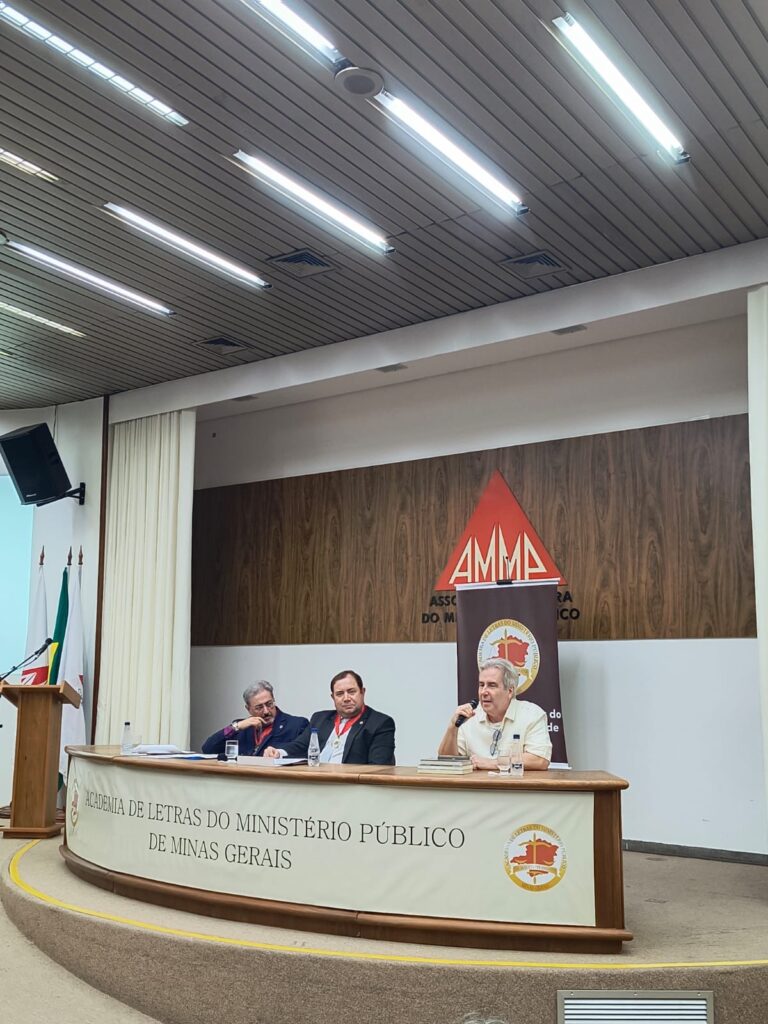 A palestra foi mediada pelo acadêmico e Presidente da ALEMP, Marcos Paulo de Souza Miranda, e teve como debatedor o Procurador de Justiça Aposentado Duarte Bernardo Gomes.