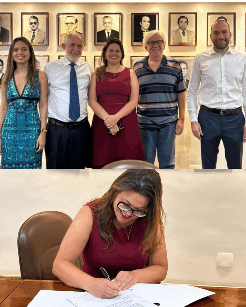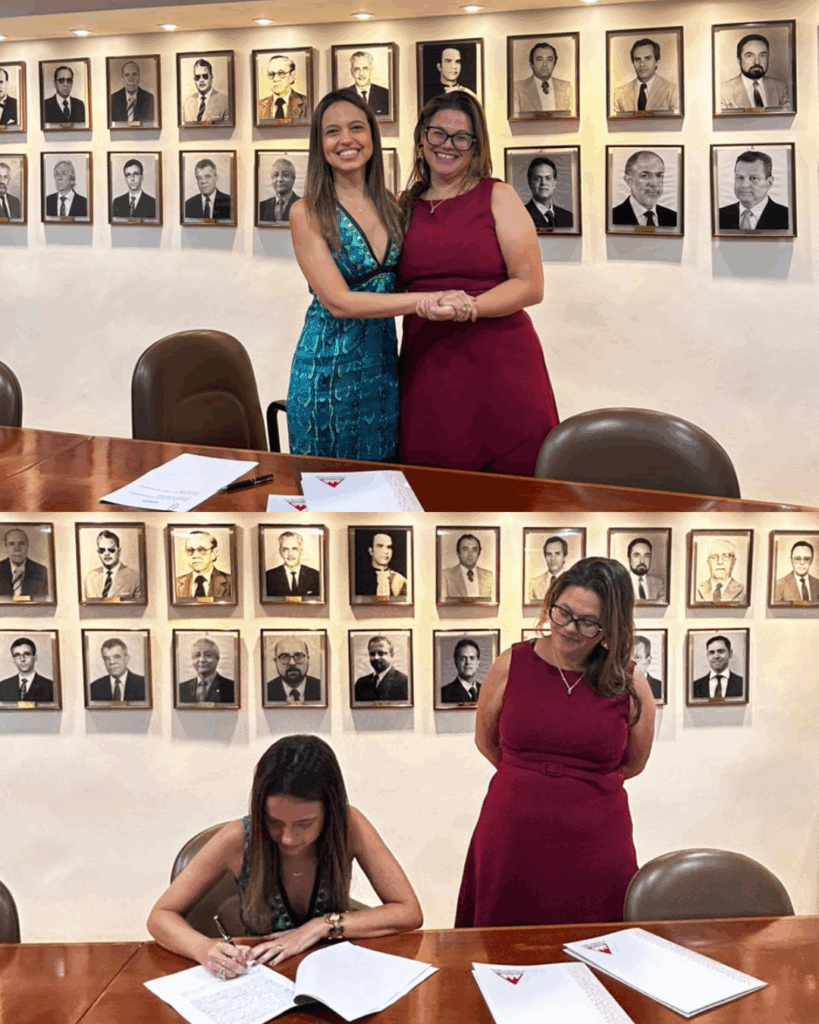 Durante o ato, Larissa Rodrigues Amaral, Presidente da AMMP na gestão 2024/2025, e a Presidente eleita, Luz Maria Romanelli de Castro, assinaram a ata de posse, oficializando a transição administrativa da entidade.