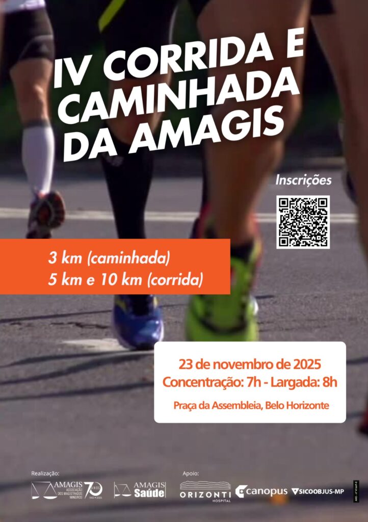 Estão abertas as inscrições para a IV Corrida e Caminhada da Amagis. O evento celebra a integração, o bem-estar e o espírito esportivo entre magistradas, magistrados, familiares e representantes de instituições parceiras.